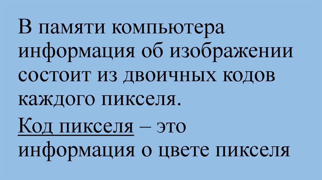 В памяти компьютераинформация об изображении