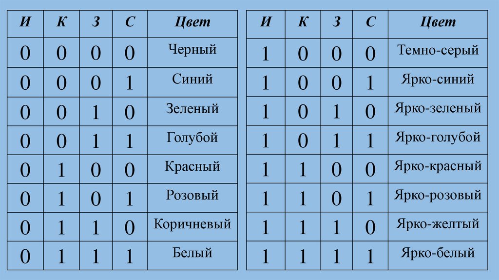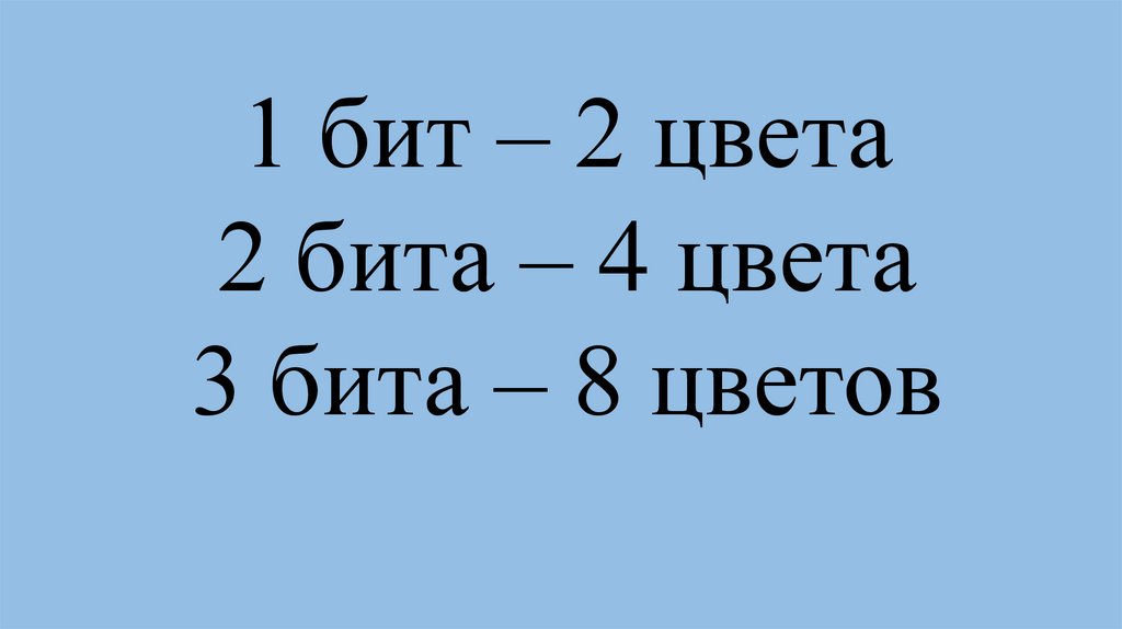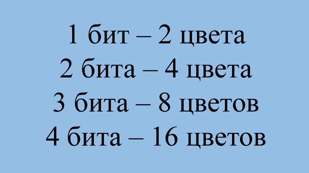 1 бит – 2 цвета6.