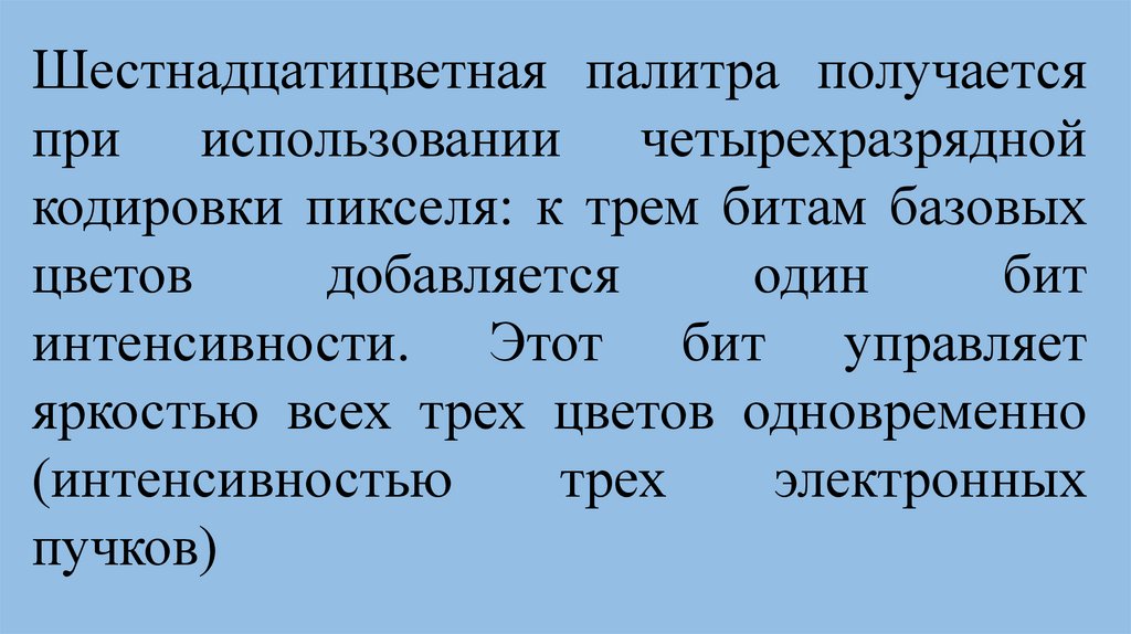 Шестнадцатицветная палитра получаетсяпри использовании четырехразрядной