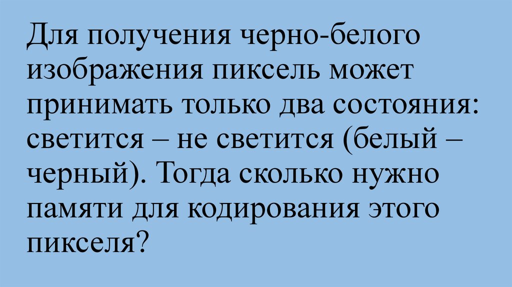 Для получения черно-белогоизображения пиксель может