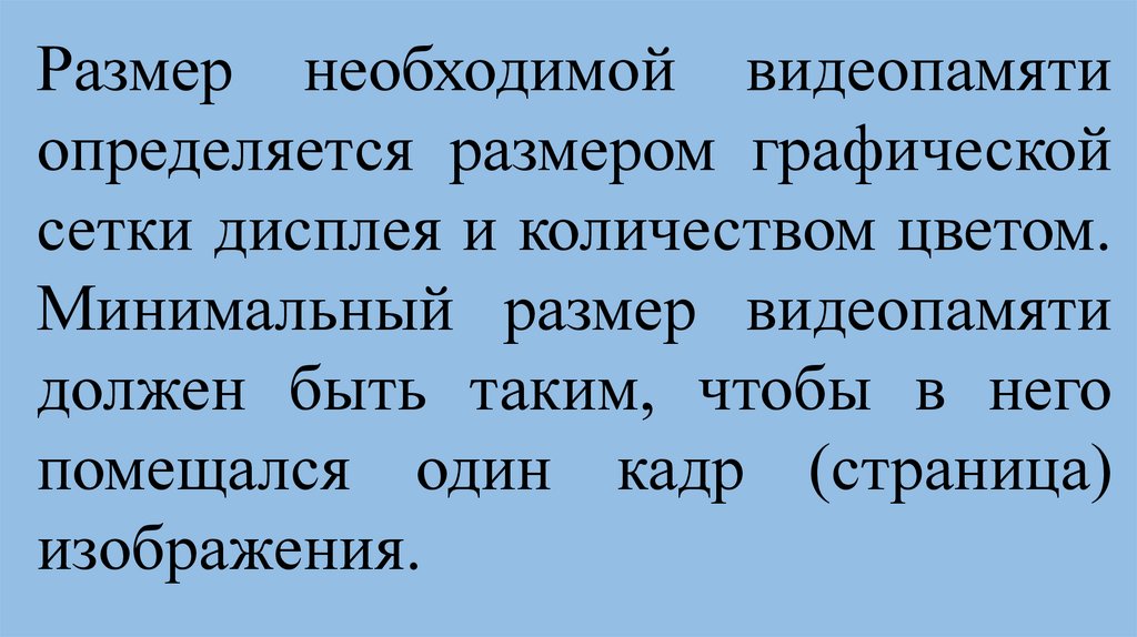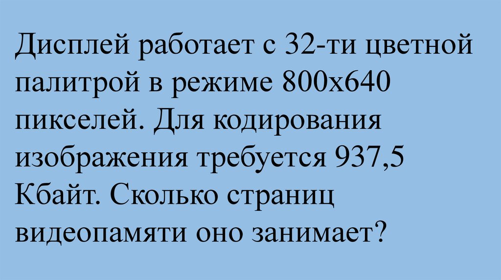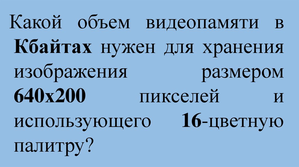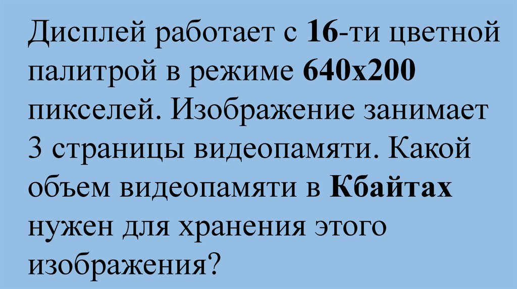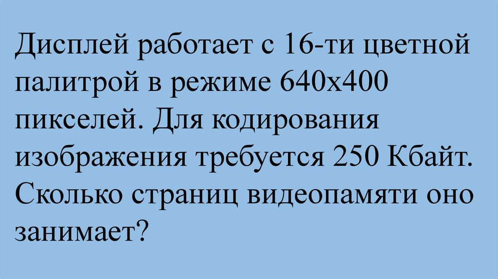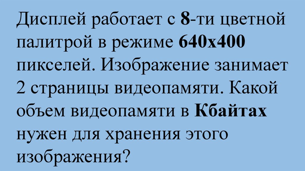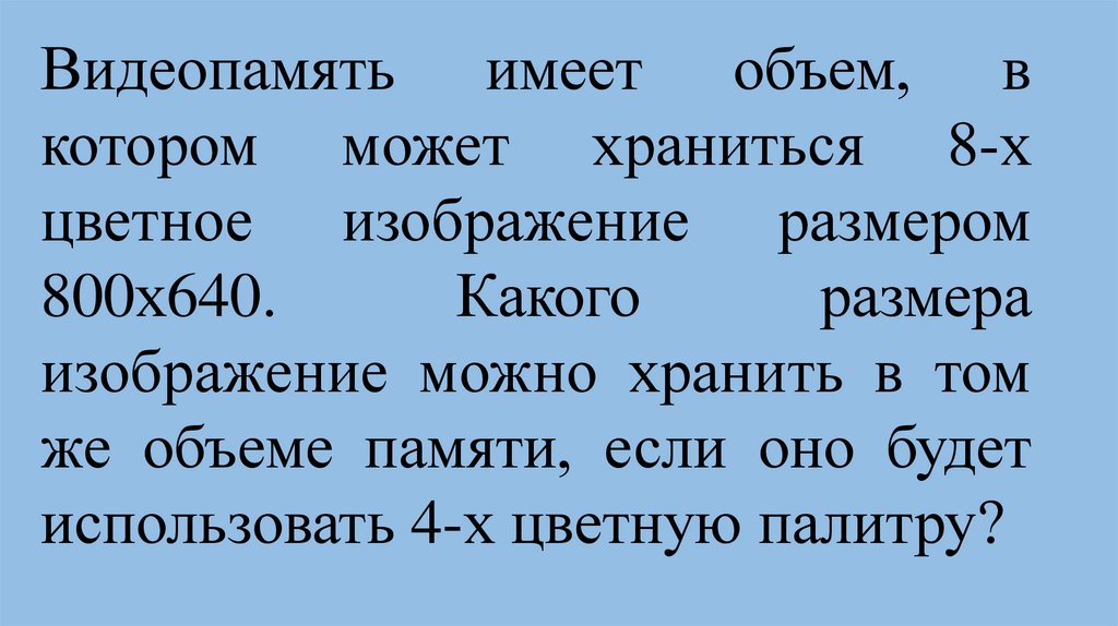 Видеопамять имеет объем, вкотором может храниться 8-х