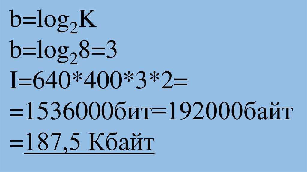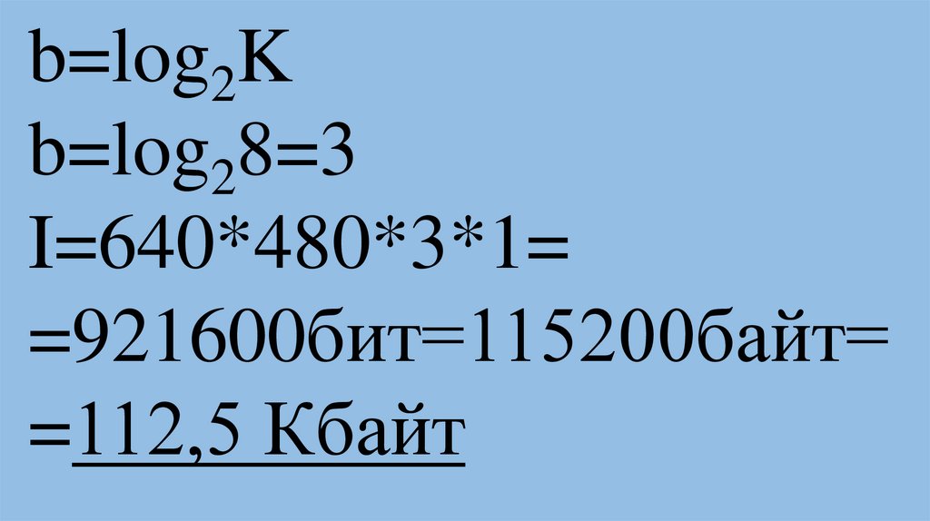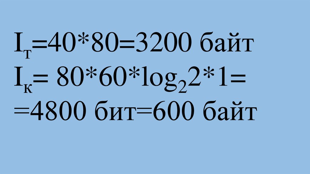 Iт=40*80=3200 байтIк= 80*60*log22*1=