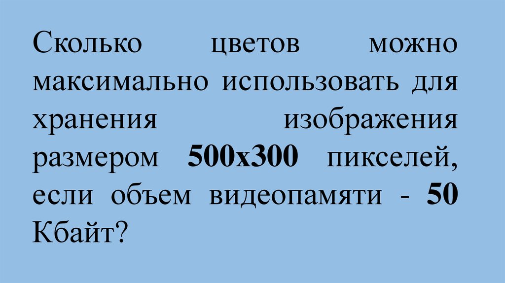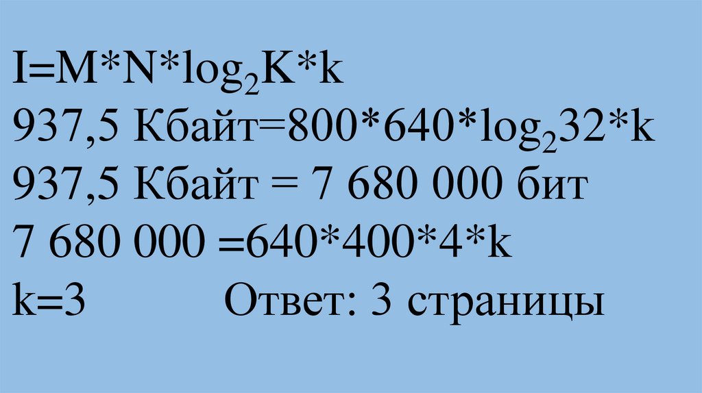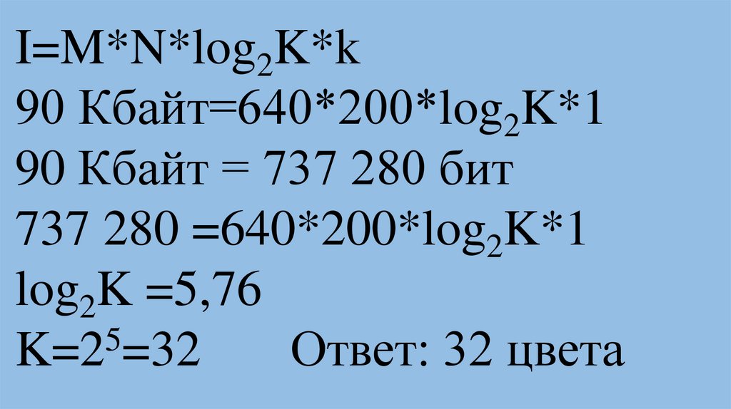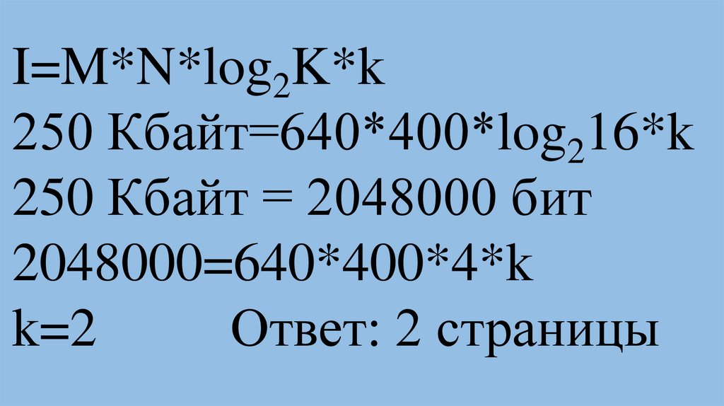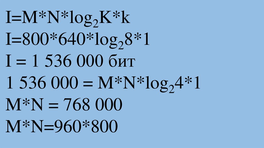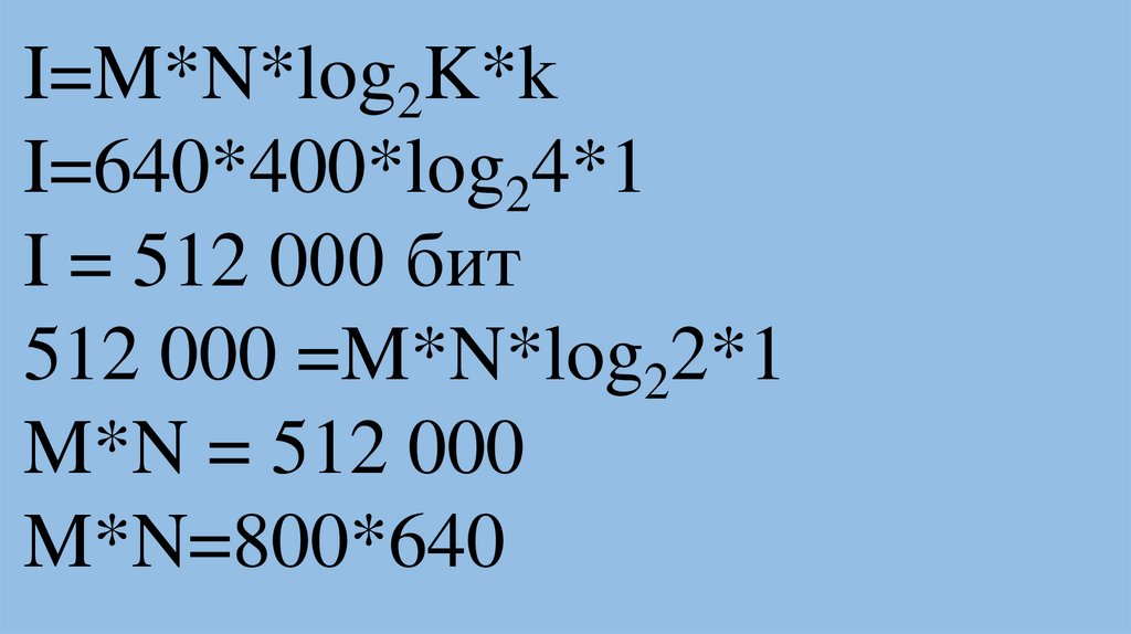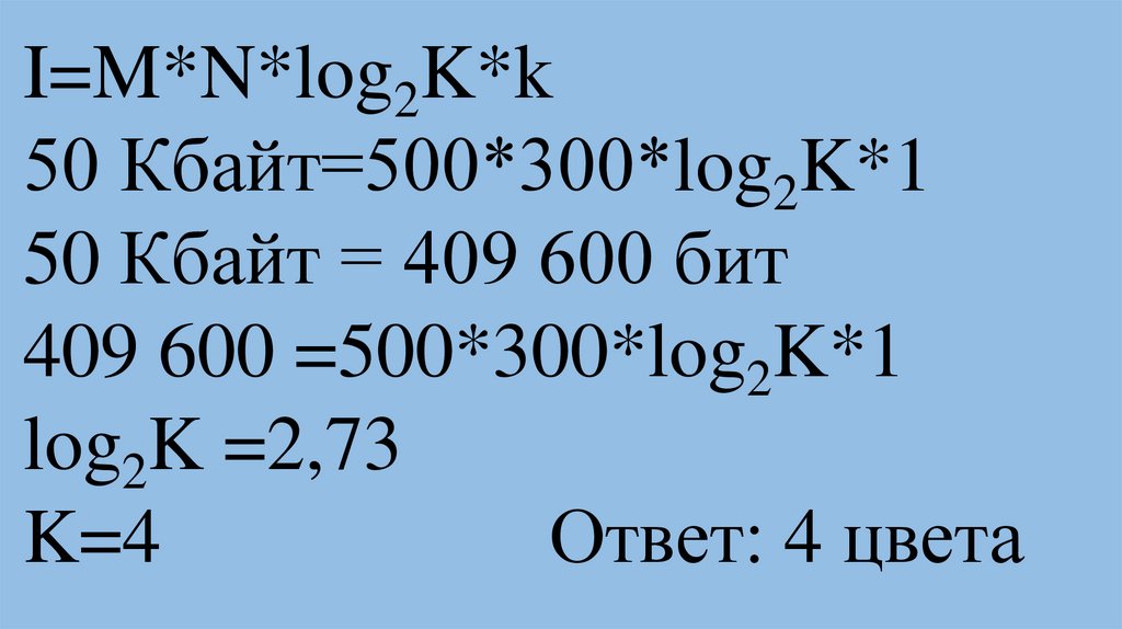 I=M*N*log2K*k50 Кбайт=500*300*log2K*1