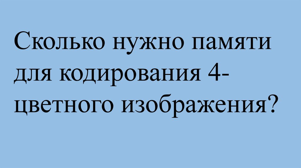 Сколько нужно памятидля кодирования 4цветного изображения?