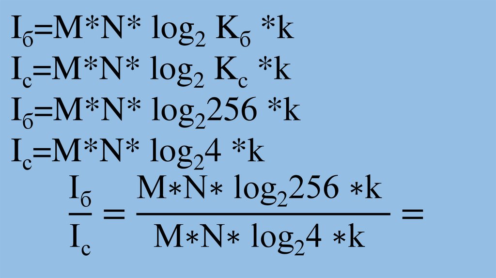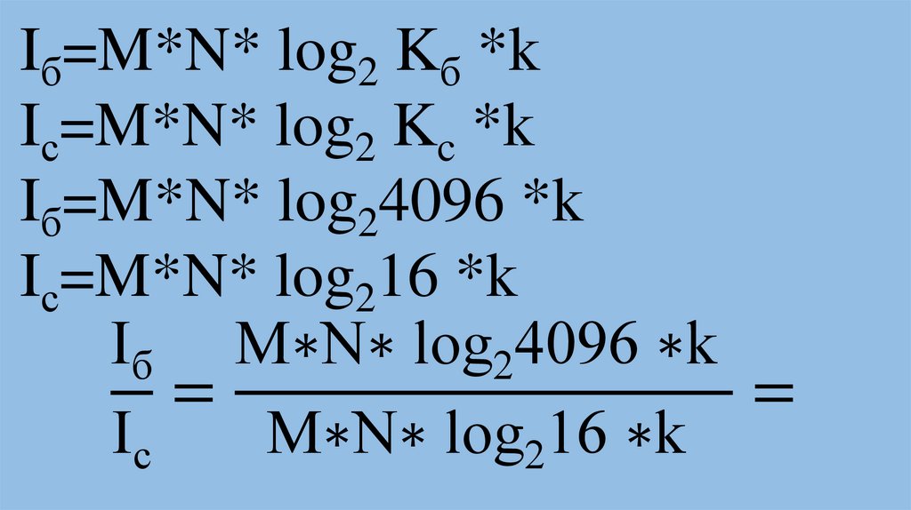 Iб=M*N* log2 Kб *kIс=M*N* log2 Kc *k