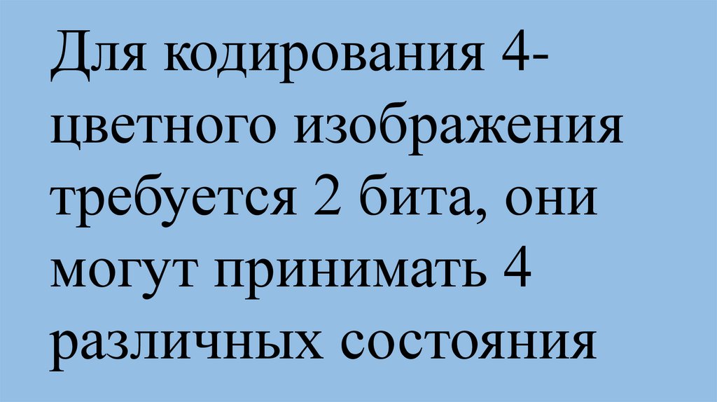 Для кодирования 4цветного изображениятребуется 2 бита, они