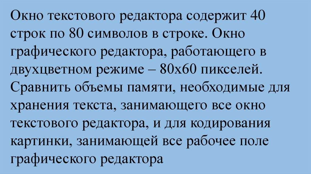 Окно текстового редактора содержит 40строк по 80 символов в строке. Окно
