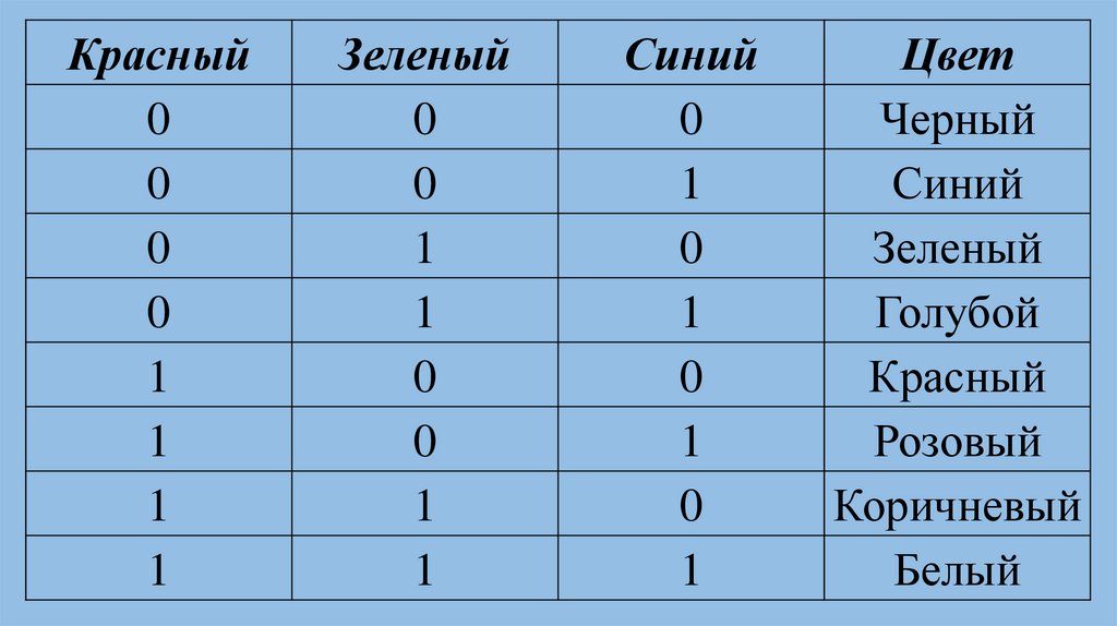 3 бита – 8 цветов