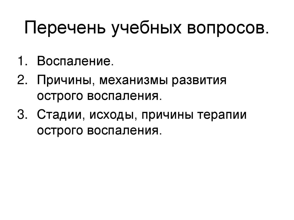 Перечень учебных вопросов.1. Воспаление.