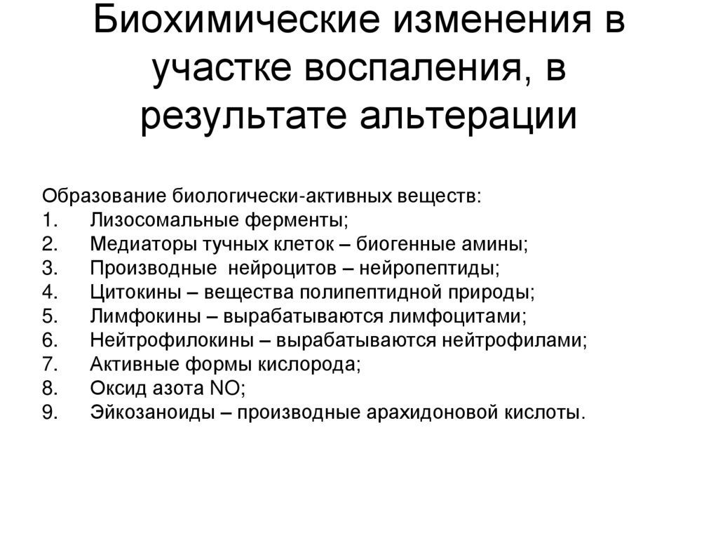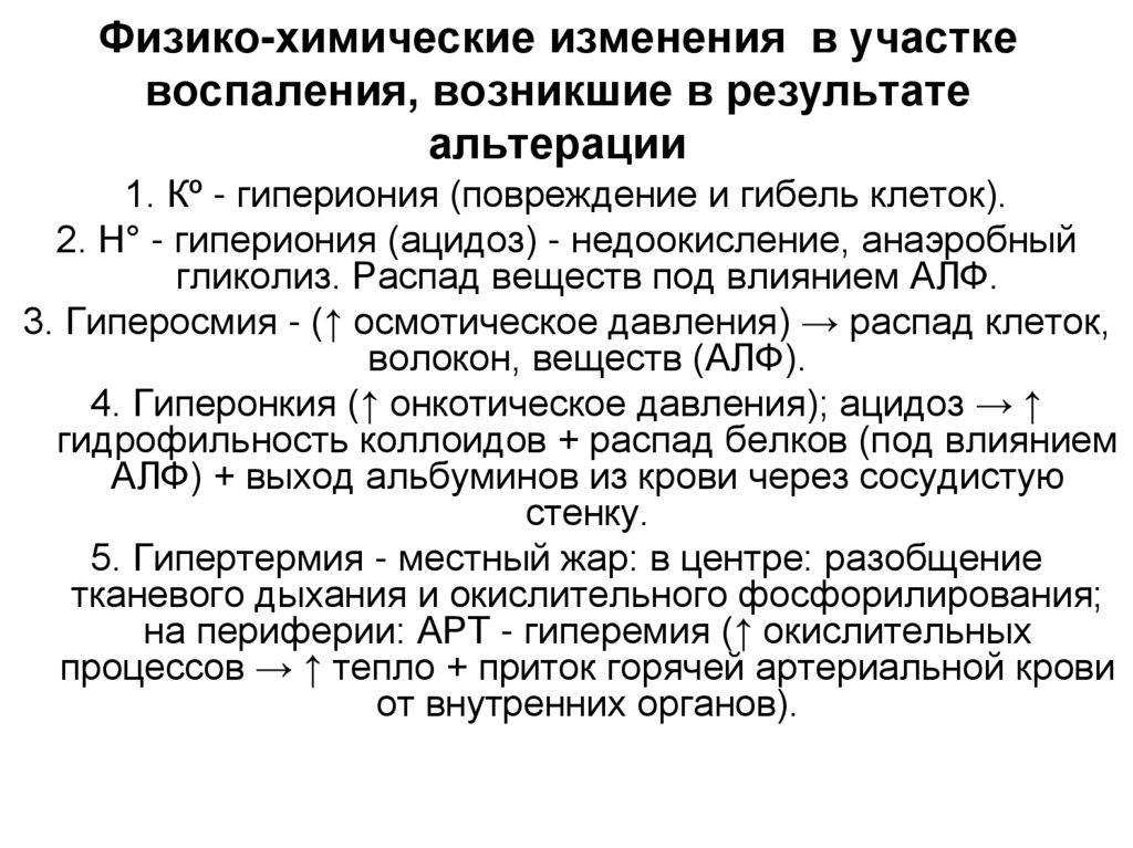 Биохимические изменения вучастке воспаления, в