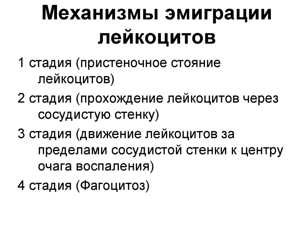 эмиграцию лейкоцитов в очаге