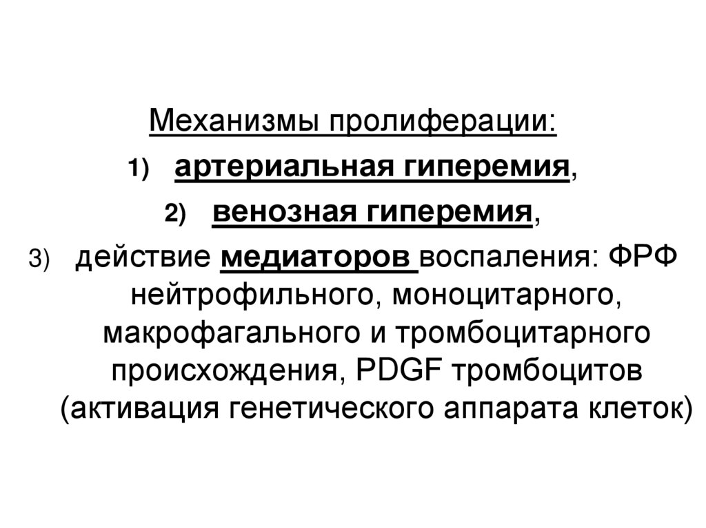 Механизмы пролиферации:1) артериальная гиперемия,