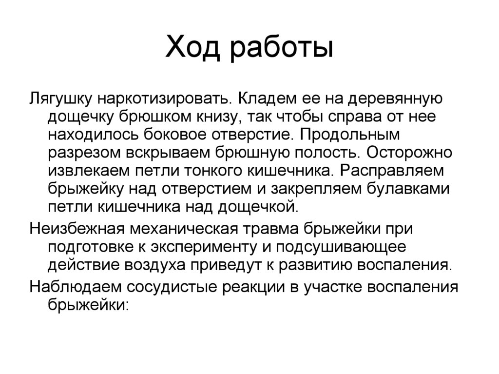Ход работыЛягушку наркотизировать. Кладем ее на деревянную