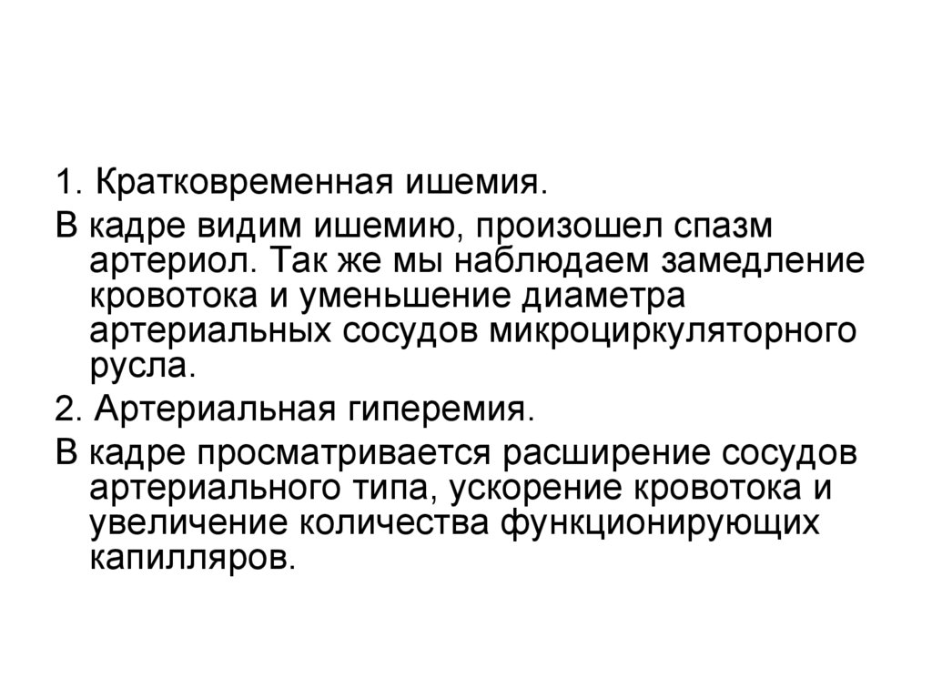 1. Кратковременная ишемия.В кадре видим ишемию, произошел спазм