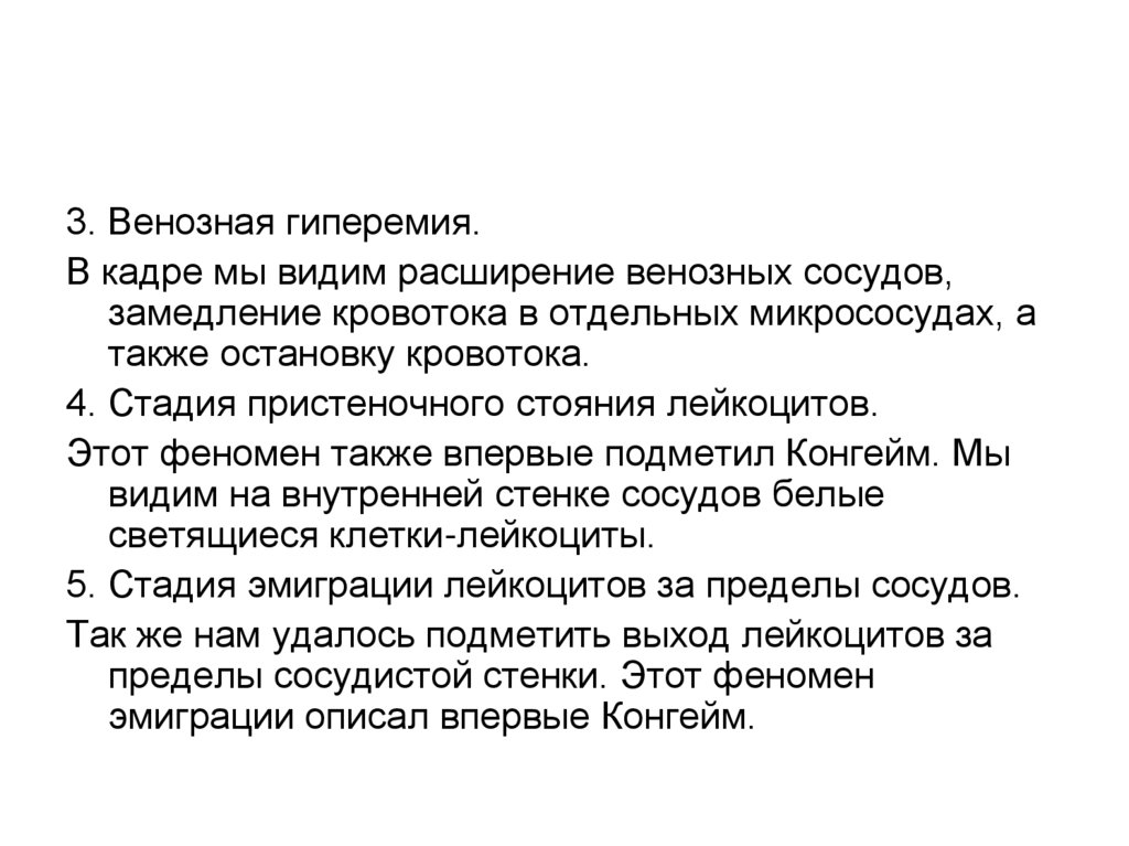 3. Венозная гиперемия.В кадре мы видим расширение венозных сосудов,
