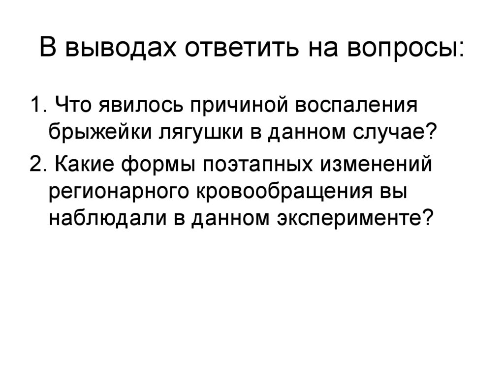 В выводах ответить на вопросы:1. Что явилось причиной воспаления
