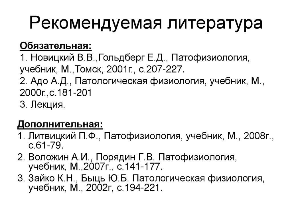 1. Новицкий В.В.,Гольдберг Е.Д., Патофизиология,