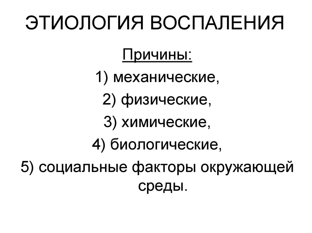 ЭТИОЛОГИЯ ВОСПАЛЕНИЯПричины: