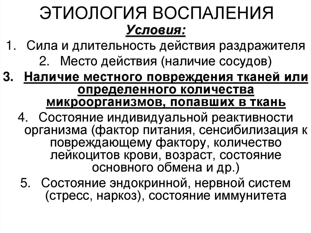 ЭТИОЛОГИЯ ВОСПАЛЕНИЯУсловия: