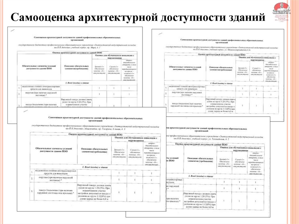Паспорта доступности для инвалидов различных нозологий объектов ГБПОУ «Златоустовский индустриальный колледж»