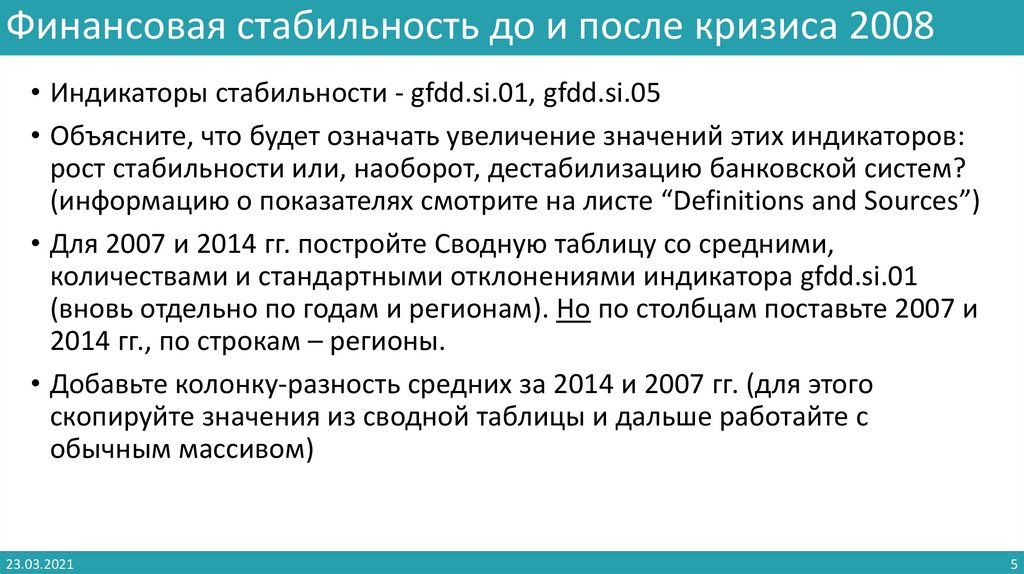 Финансовая стабильность до и после кризиса 2008• Индикаторы стабильности - gfdd.si.01, gfdd.si.05