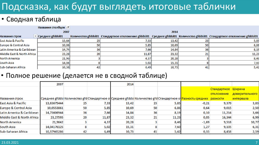 Подсказка, как будут выглядеть итоговые таблички• Сводная таблица