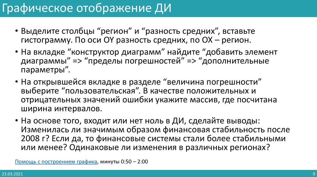 Графическое отображение ДИ• Выделите столбцы “регион” и “разность средних”, вставьте