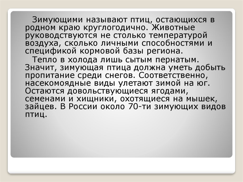Зимующими называют птиц, остающихся вродном краю круглогодично. Животные