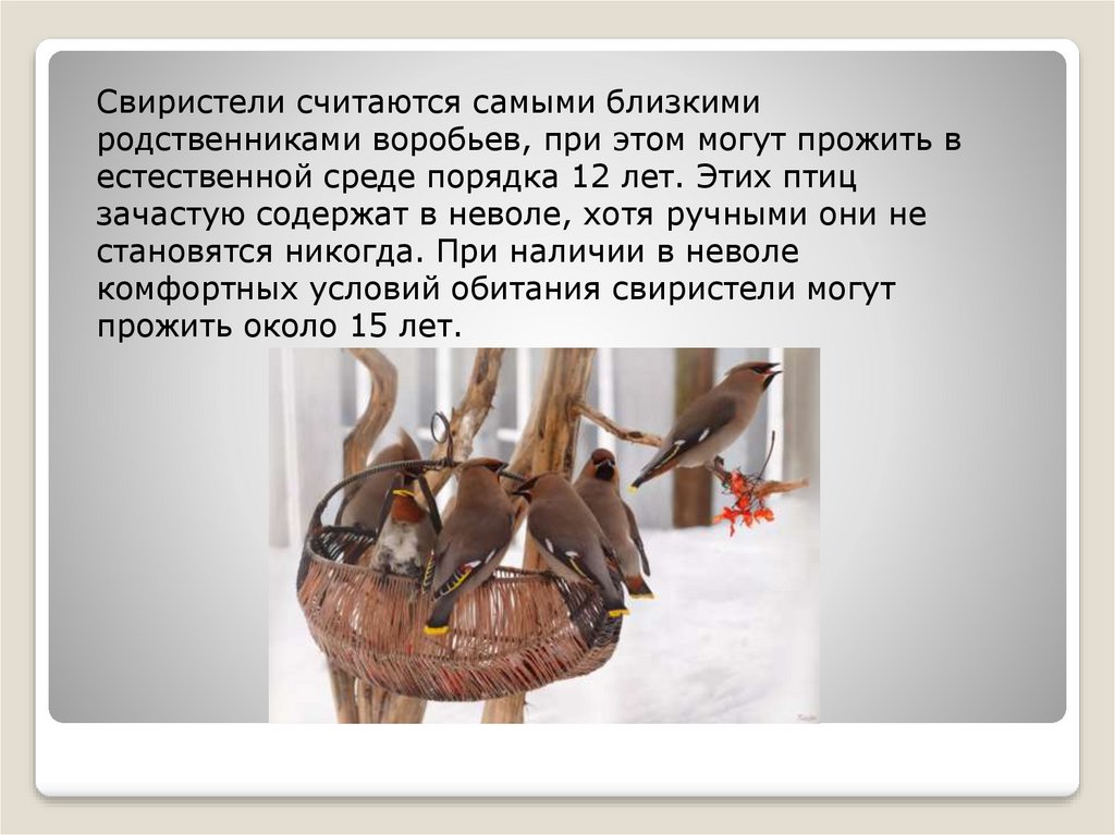 Свиристели считаются самыми близкимиродственниками воробьев, при этом могут прожить в