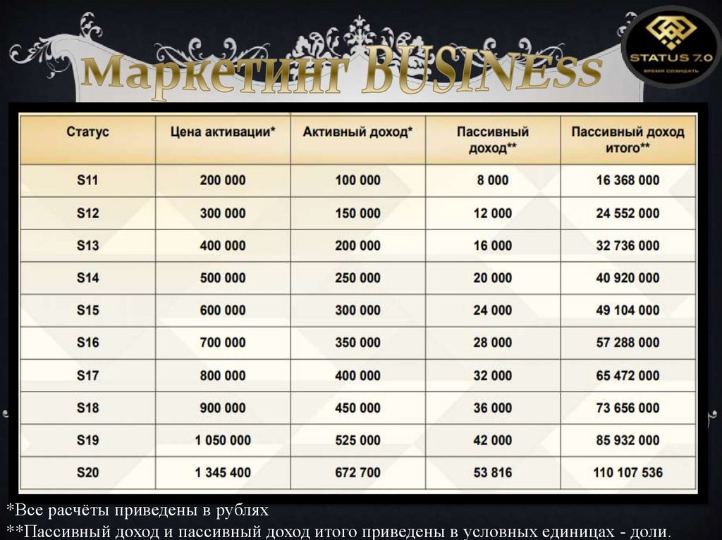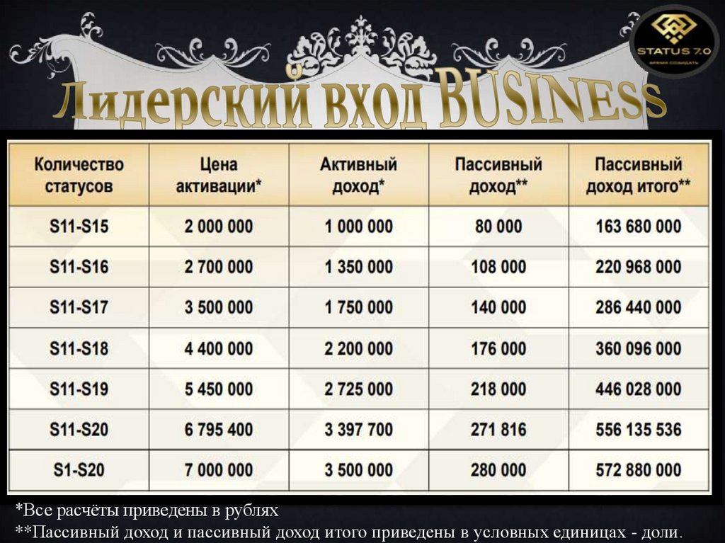 ** В партнерском пакете BUSINESS бонус 10% за пассивный