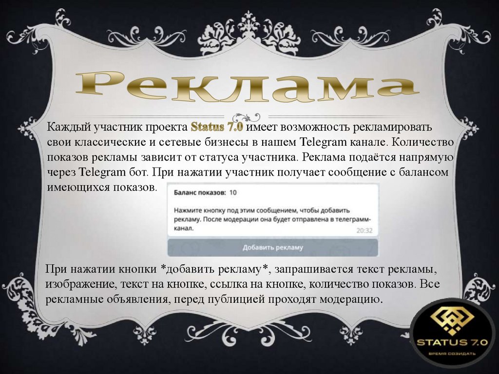 показов рекламы зависит от статуса участника. Реклама подаётся напрямую