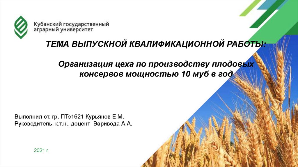 ТЕМА ВЫПУСКНОЙ КВАЛИФИКАЦИОННОЙ РАБОТЫ:Организация цеха по производству плодовых