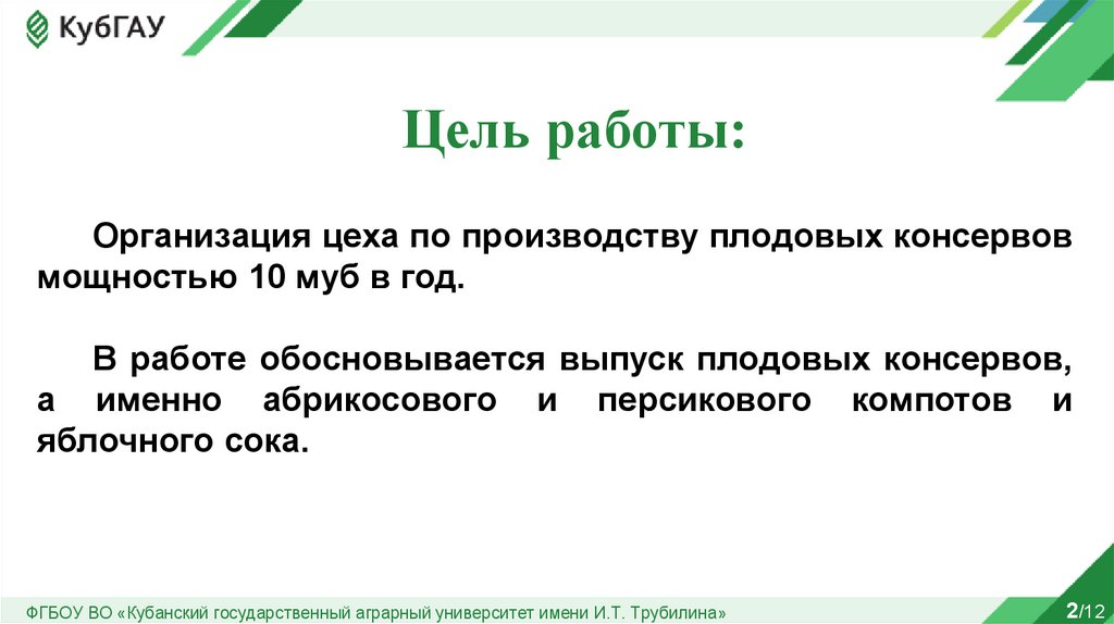 ФГБОУ ВО «Кубанский государственный аграрный университет имени И.Т. Трубилина»7/12