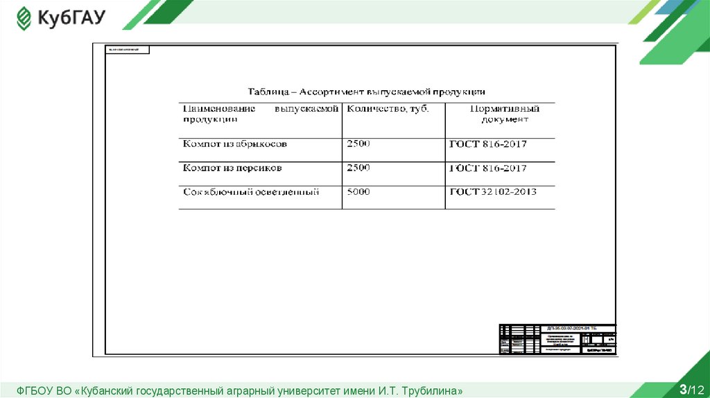 ФГБОУ ВО «Кубанский государственный аграрный университет имени И.Т. Трубилина»3/12