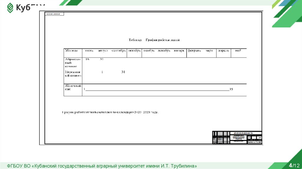 ФГБОУ ВО «Кубанский государственный аграрный университет имени И.Т. Трубилина»4/12