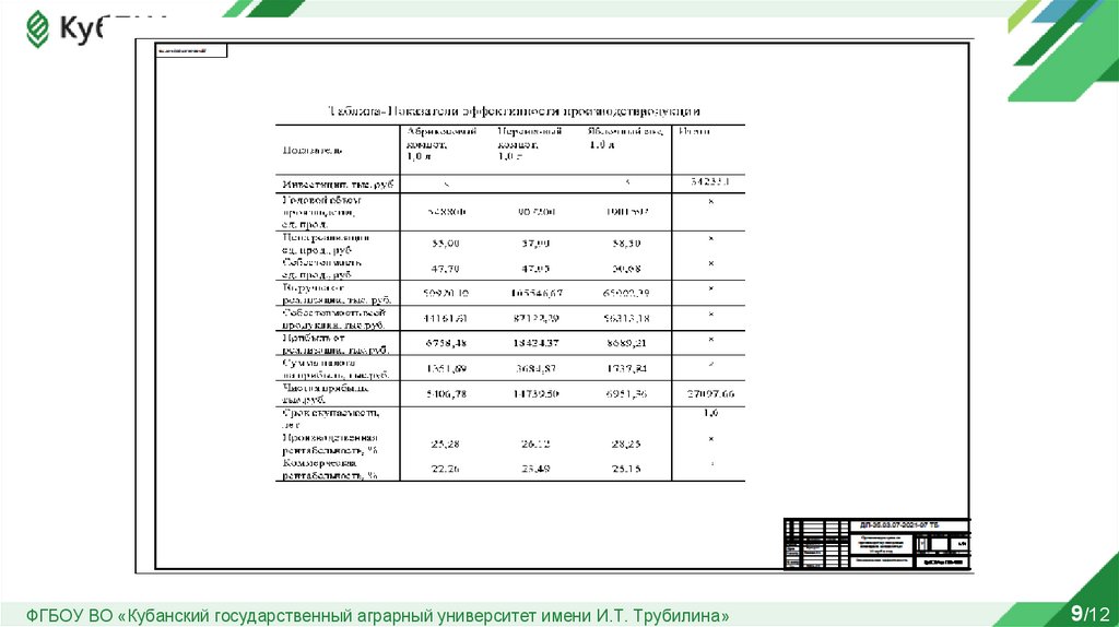 ФГБОУ ВО «Кубанский государственный аграрный университет имени И.Т. Трубилина»9/12