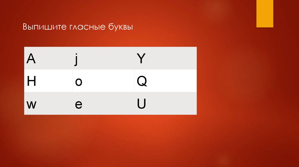 Выпишите гласные буквыA