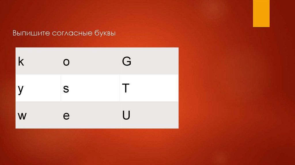Выпишите согласные буквыk