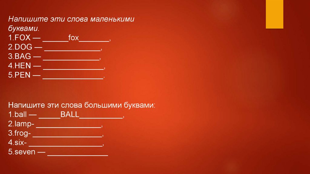 Напишите эти слова маленькимибуквами.