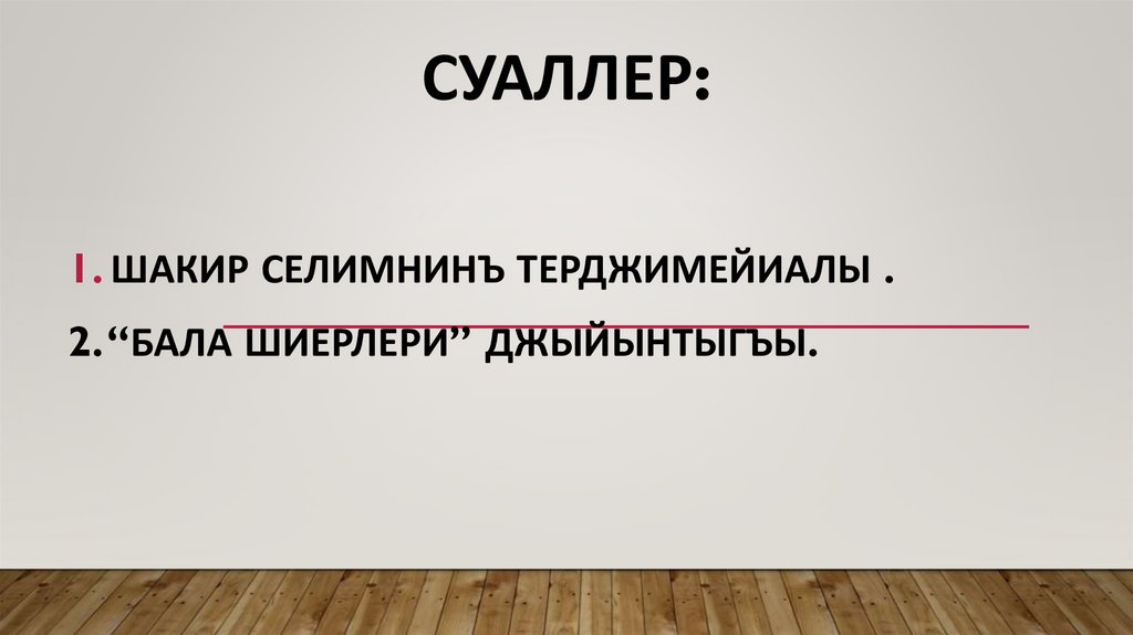 СУАЛЛЕР:1. ШАКИР СЕЛИМНИНЪ ТЕРДЖИМЕЙИАЛЫ .