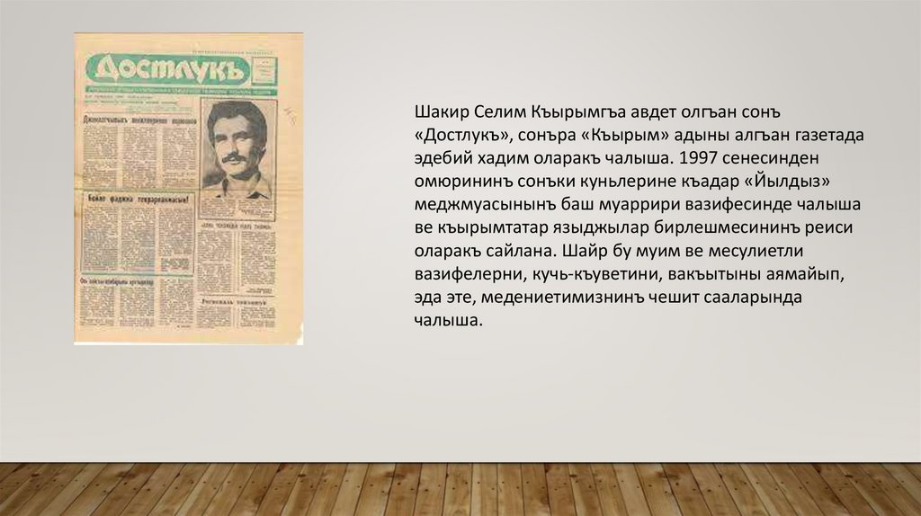 Шакир Селим Къырымгъа авдет олгъан сонъ«Достлукъ», сонъра «Къырым» адыны алгъан газетада