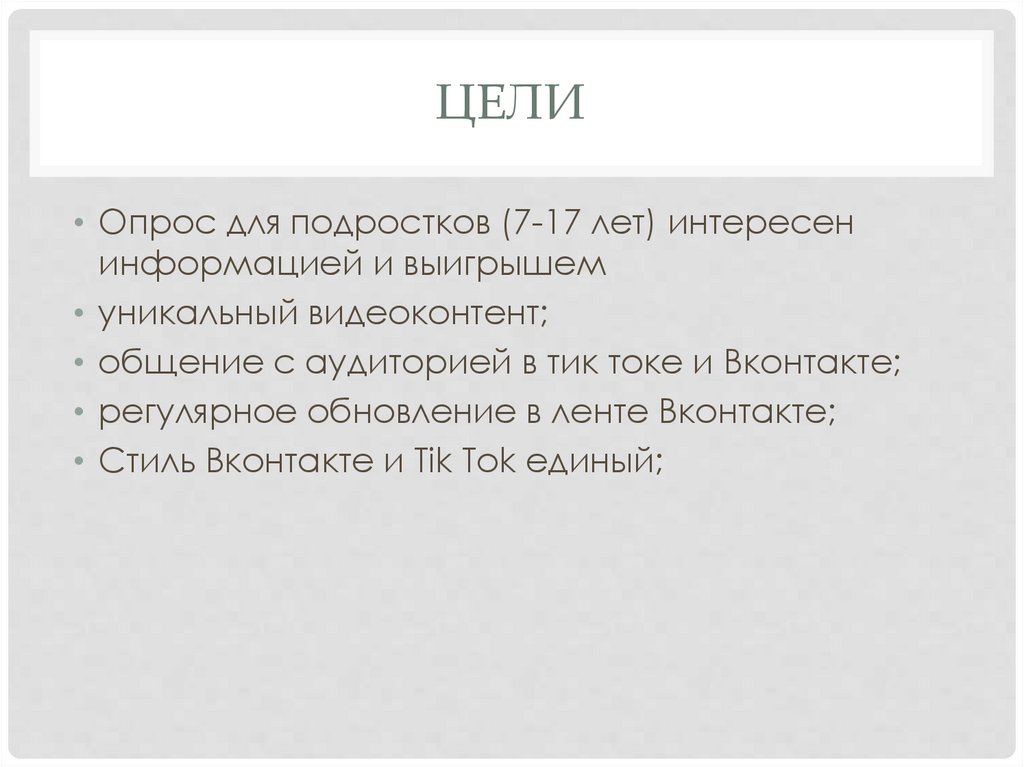ЦЕЛИ• Опрос для подростков (7-17 лет) интересен