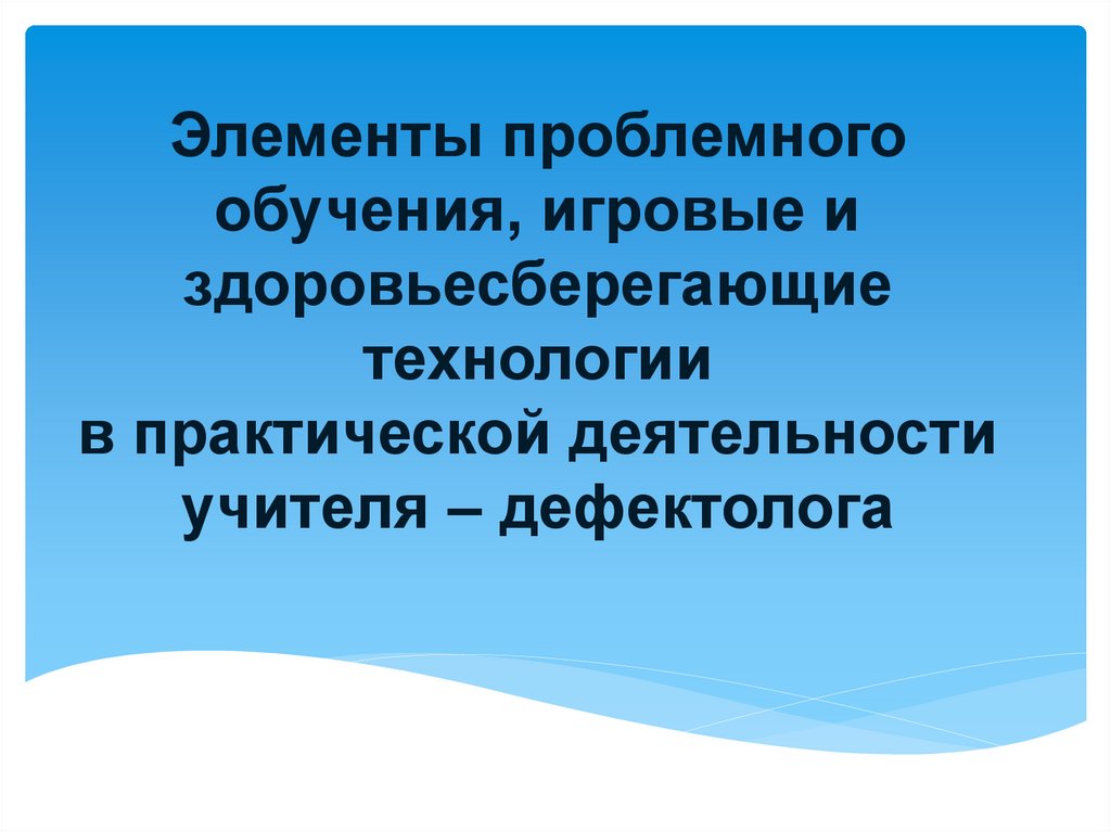 Элементы проблемного обучения, игровые и здоровьесберегающие технологии в деятельности учителя – дефектолога