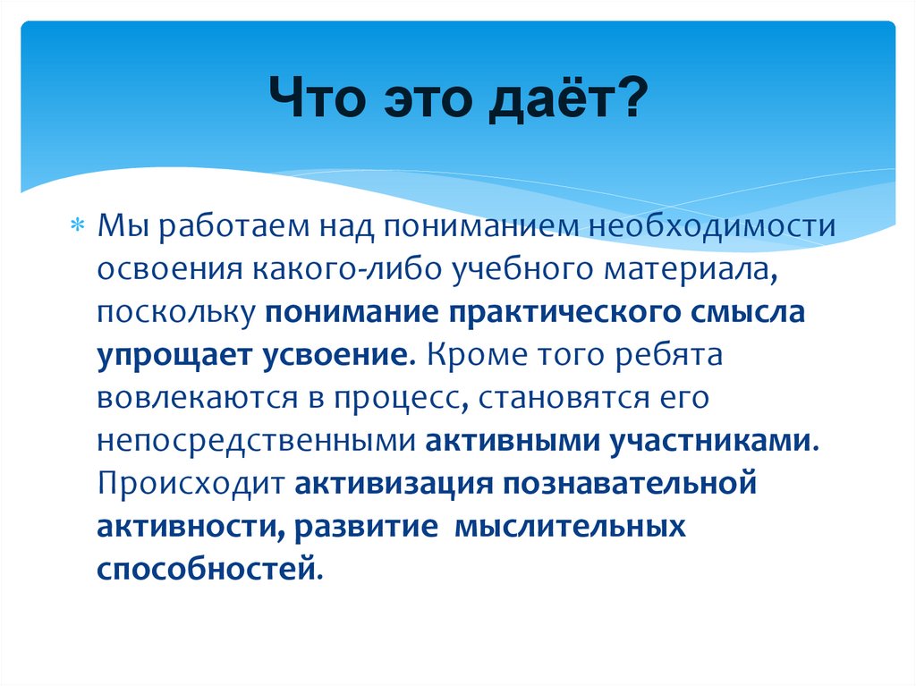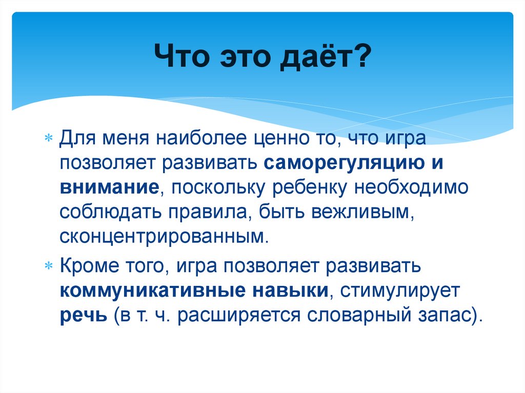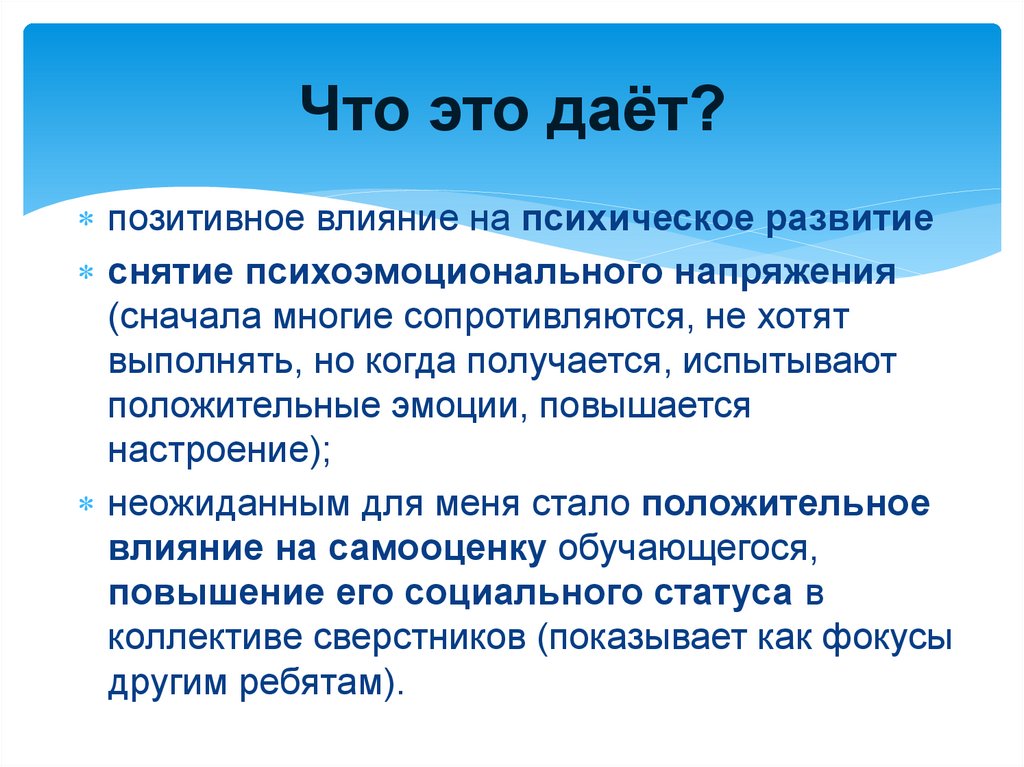 Что это даёт?позитивное влияние на психическое развитие
