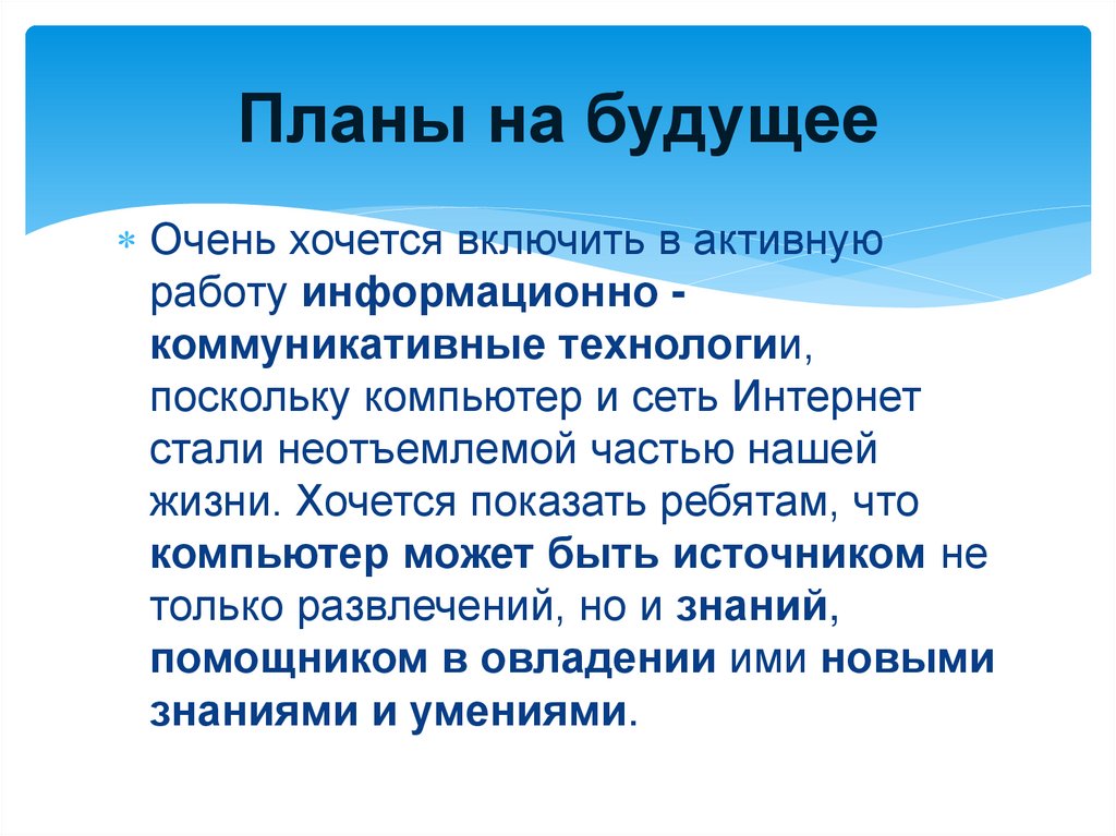 Планы на будущееОчень хочется включить в активную