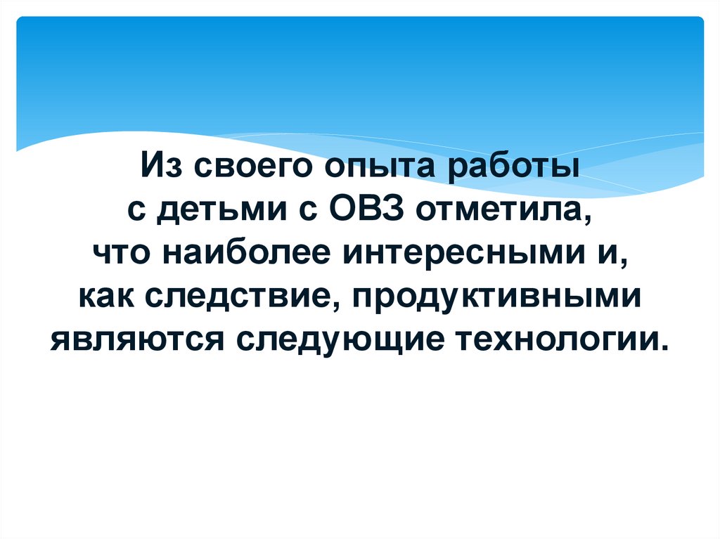 Из своего опыта работыс детьми с ОВЗ отметила,
