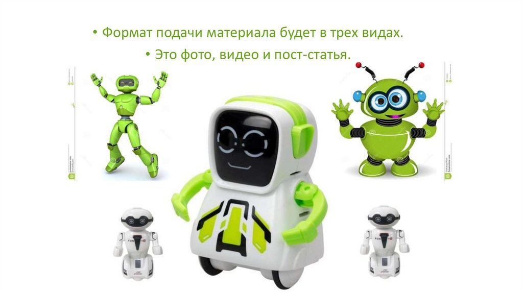 • Формат подачи материала будет в трех видах.• Это фото, видео и пост-статья.