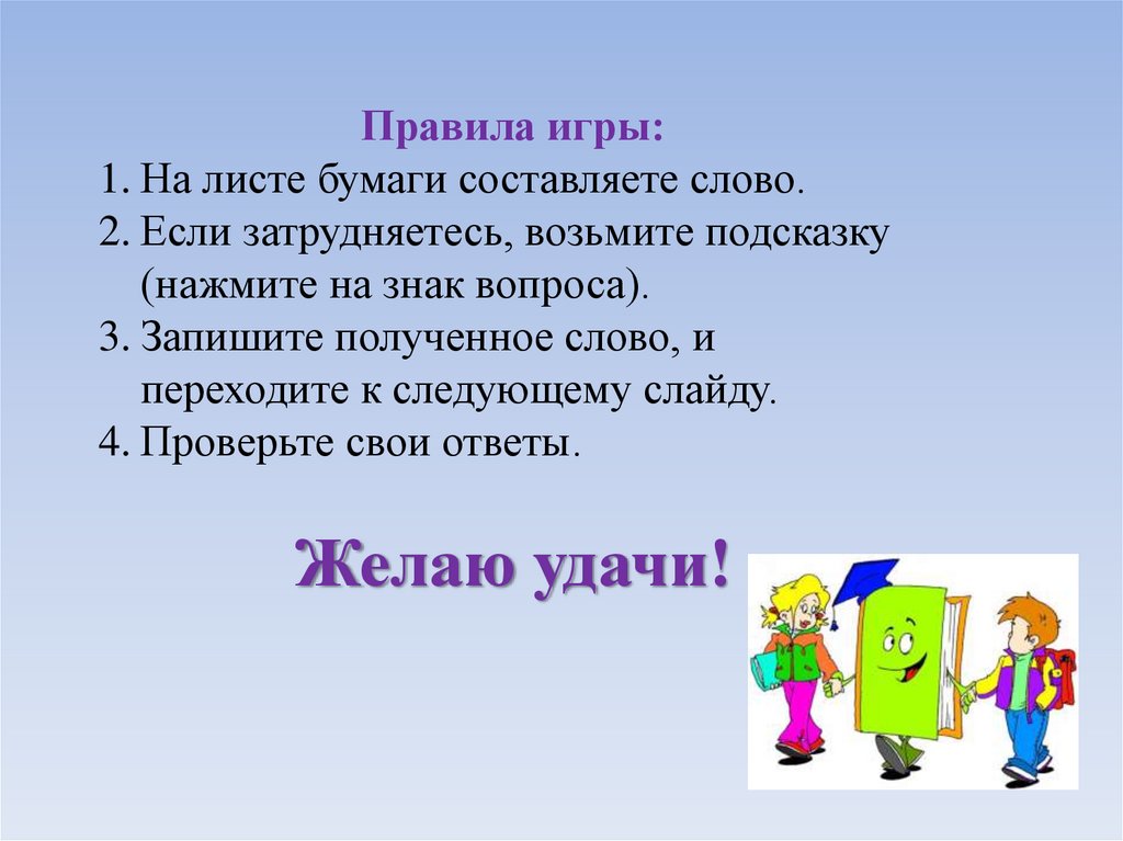 Правила игры:1. На листе бумаги составляете слово.