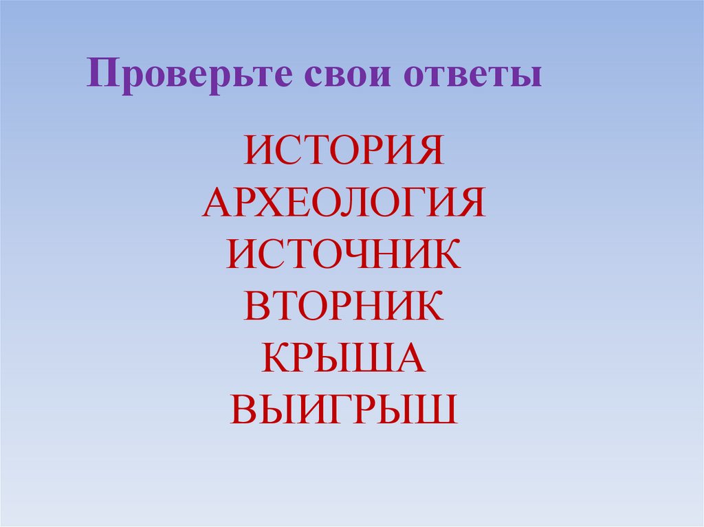 Проверьте свои ответыИСТОРИЯ