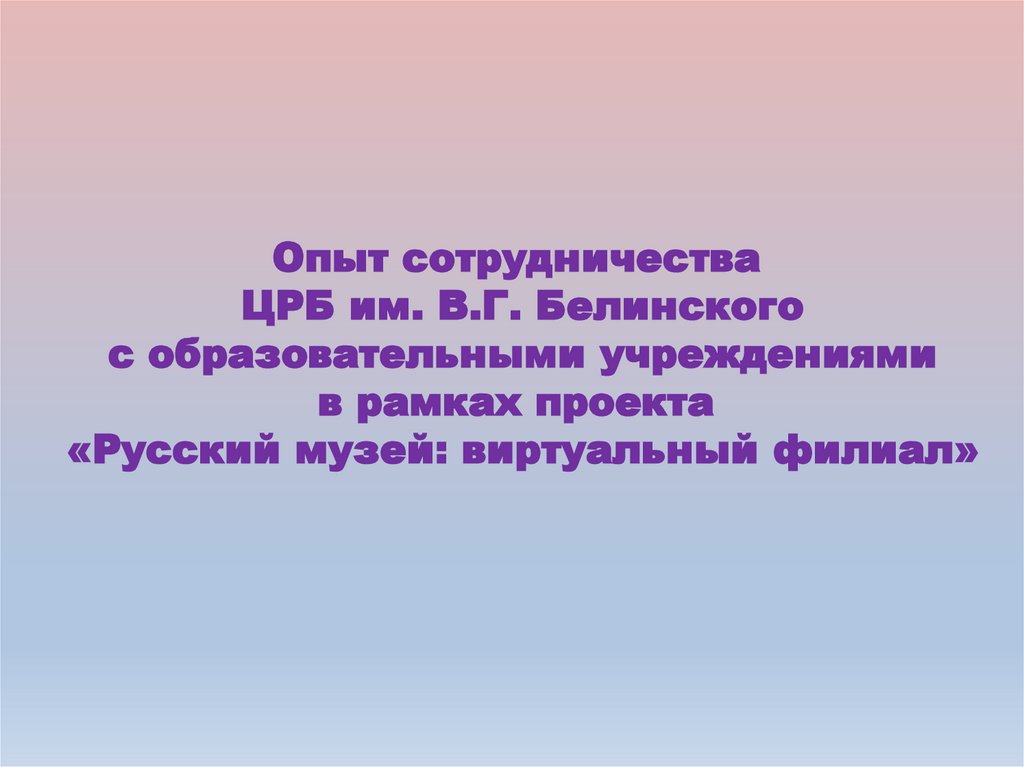 Опыт сотрудничества ЦРБ им. В.Г. Белинского с образовательными учреждениями